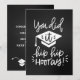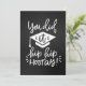 Graduation greeting card with You did it and Hip Hip Hooray modern calligraphy messages and graduation cap on chalkboard black background. Perfect design to Change the greeting text on the back with easy to use Zazzle tool! Visit the shop to see all the collection.