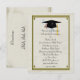 An elegant graduation invitation postcard with black cap and diploma, framed in gold on parchment-look background.
