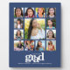 Be proud, rejoice and showcase this milestone of your favourite grad. Create this elegant, simple, modern, personalised high school graduation K – 12 photo collage easel back plaque for a keepsake you’ll always treasure. A fun, playful visual of bold, graphic, white typography, along with their name, class year, school and 13 photos of your choice overlay a dramatic, navy blue background. Personalise the custom text with your grad’s name, school and class year. Matching invites, thank you cards, cap toppers, napkins, plates and other graduation goodies are also available in this trendy and stylish collection. Guaranteed to preserve cherished memories of their special occasion!