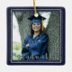 This commemorative keepsake ceramic ornament features two photos of the graduate and includes their name, school and graduation year. Makes a thoughtful gift for any graduate. NOTE: The NAVY BLUE background colour can be changed by clicking on the CUSTOMIZE tab. The silver faux glitter border accentuates most all school colours. The font style/colour/size/placement can be changed as well.