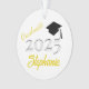 Celebrate a high school or college graduation with this personalised keepsake ornament. Original design by Night Owl's Menagerie, 2023.
