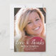 Send an elegant thank you card to your family and friends for their graduation gifts to you. This design features your photo on the front with a modern script which reads. "Love & Thanks" in black typography with your name and class/year below. The back of the card is black with a message you may personalise or delete. Designed by artist ©Susan Coffey. Photography © Storytree Studios, Stanford, CA.