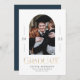 Modern elegant trendy typography graduation navy blue, black and white 1 photo arch graduation announcement card design.