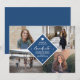 Chic classic blue and white typography script making a stylish elegant personalised graduation 4 photo grid announcement card. ++++++++++ Easy to customise with your details and four custom images! +++++++++++ If you need a specific colour or combination, please message the designer through the button below!