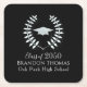 This design features a grad graduation party paper coaster design with a trendy class of your year. for a graduate, graduation supplies favour party high school college graduate, modern simple elegant typography, senior leaf wreath, for college or university, celebration congratulations, Black and white blue hat, cap mortarboard laurel leaves