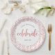 “Celebrate.” Be proud, rejoice and showcase this milestone of your favourite grad! Celebrate with this stunning, modern, sparkly rose gold glitter dots and typography script against a dusty pink and white striped background, paper plate for an event to remember. Personalise the custom text with your grad’s name and class year. Your choice of 2 sizes: 7” or 9”. Guaranteed to add stylish fun to her special party! Matching invites, napkins and other graduation goodies are also available in this trendy and special collection.