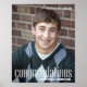 This design features a graduation graduate grad party, a photo picture 2 two photos yard sign, a block script font typography, a minimal minimalist style design, a modern elegant typography template, with block white script overlay, a simple graduate grad yard sign, a modern style typography text overlay, for high school or college senior, with congratulations congrats graduate