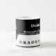 Personalised graduation coffee mugs, change year, name and school. Background colour can be changed too by clicking the "Customise" button, then click "Edit">>Background" and select a colour.