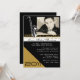 Black photo invitation with music notes and saxophone for the graduating musician. Great for music degrees, marching band, or jazz band. Customise with photo and your own text. Saxophone is removable.
