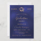 A modern, elegant graduation party invitation. A navy blue background, golden text. The blue colour is uneven. Personalise and add a name, year and details.