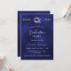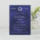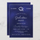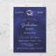 A modern, elegant graduation party invitation. A navy blue background, white text. The blue colour is uneven. Personalise and add a name, year and details.