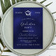 A modern, elegant graduation party invitation. A navy blue background, white text. The blue colour is uneven. Personalise and add a name, year and details.