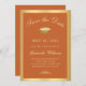 Send your family and friends an elegant graduation save the date announcement featuring an orange background with fuax gold calligraphy and gold grad cap bordered by a gold frame. Personalise with your graduation details. Designed by Susan Coffey.