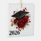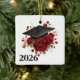 Graduation ornament is shown with a grad cap, and pretty red roses print with date.