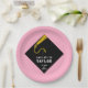 Creative party plates featuring graduation cap and gold tassel art on pink background. Edit text to add your favourite grad's name and the year.