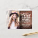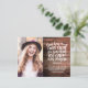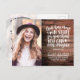 Announce your 2020 high school graduation to family and friends with this rustic personalised photo grad announcement and party invitation postcard. The design template features your photo with a bible verse to the right in a modern script typography which reads "God has more in store for you than you can even imagine." with your name, school, year and date in white on a wood background. The back of the postcard has more of your graduation details with party invitaton for you to customise accented by a Christian cross. Congratulations on your graduation! Designed by artist Susan Coffey.