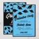 If your school colours are black and light blue, this graduation invitation is singing your school song. A black and pale blue customisable invitation for a graduation party for him or her. Personalise the front of these graduation invitations with the graduate's name and your party information. Customise the back of the graduation invitation with the graduation year and school. Black graduation caps and mortarboards tossed in the air on a blue background. Fun graduation party invitation for high school or college graduations.