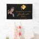 A chic black background. Decorated with golden confetti and a modern, abstract faux gold cap, hat, tassel topper with the year inside. Add your own photo of the graduate. Text: Congratulations! The text: Graduate, and the name are written with a large modern hand lettered style script. For both him and her.