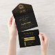 Graduation party black gold confetti RSVP All In One Invitation
