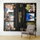 A tapestry for a graduation celebrating his/her life with a collage of 6 of your high quality photos of her, her friends, family, interest or pets. Personalise and add her name and a text/year. Golden text. A chic, classic black background colour. Her name is written with a modern hand lettered style script. Decorated with faux gold stars dripping.