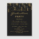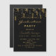 A modern and stylish invitation magnet for a graduation party. For both him and her. A classic black background and golden and black party streamers as decor. Personalize and add a name and party details. The text Graduation and the name are written with modern handlettered style script. Golden letters.