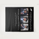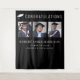Elegant black graduation party photo booth backdrop to celebrate the graduate. "CONGRATULATIONS" is in large white typography with an illustration of a graduation cap. Add three photos of the grad and their name, class year and school name in modern white typography. The background and text colors can be edited to match your school colors by editing in the design tool.