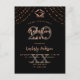 A black background decorated with rose gold stars and a cap. Personalise and add a name, year and party details. The text Graduation and the name are written with modern hand lettered style script.