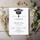 A modern and stylish black and white invitation for a graduation party. Decorated with a black graduation cap. Personalize and add a name, and the details.