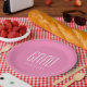 Cute Graduation Class of 2025 pink paper plate with a minimalist design. With white customisable lettering, you can add your own text. A simple party addition for the special party for your grad.