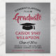 Add a personalised touch to college or high school graduation party decorations with these elegant red, grey and black wine bottle labels. Design features a grey faux brushed stainless steel background, stylish modern typography, handwritten style script calligraphy, and a customisable message reading "Congratulations to our Graduate". Text at the bottom includes class year, school name, and optional lines for degree, beverage type, or other info. All text is simple to customise. Please note that silver is printed colour, not metallic foil. These labels make a stylish graduation party drink idea and an elegant addition to the graduate's special day celebration. Cheers!