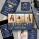 Add a personalised touch to college or high school graduation party decorations with these elegant navy blue, gold and white sparkling wine bottle labels. Design features a gold faux foil graduation cap, stylish modern typography, handwritten style script calligraphy, and a customisable message reading "Congratulations to our Graduate". Text at the bottom includes class year, school name, and optional lines for degree, beverage type, or other info. All text is simple to customise. Please note that gold is printed colour, not metallic foil. These labels make a stylish graduation party drink idea and an elegant addition to the graduate's special day celebration. Cheers!