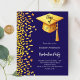 Graduation party dark blue gold invitation
