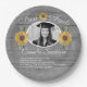 Graduation Party Fun Facts Sunflower Grey Wood Paper Plate