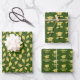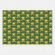 Green and gold school colours, gold graduation caps thrown in the air for both him and her. Nice graduation party gift wrap for a grad party, for a graduate from a high school, college, or university with school colours of Green and gold.