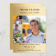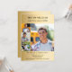 Create your own unique photo collage. Use four, 4 of your favourite photos. Personalise and add a name and party details. A faux gold background, black text.
