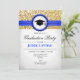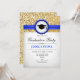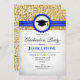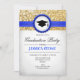 Graduation Party Invitation. Elegant design in faux glitter gold and white with and a hint of royal blue. Perfect for a glam woman's graduation party.