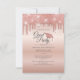 Graduation Party Grad 2022 Rose Gold Glitter Invitation. You can easily customise this by clicking the "Personalise" button. Featuring a modern sparkly glitter drip design and graduate cap with script and popular typography.