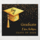 Class of 2025. For a modern and trendy graduation celebration. A chic black background with golden confetti. Personalise and add a name and year. Decorated with a modern abstract faux gold cap, tassel topper. For both him and her.