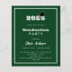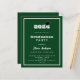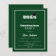 A modern and stylish invitation for a graduation party. For both him and her. Green background, white text and a frame. A black graduation cap.