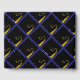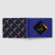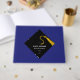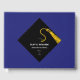 Creative graduation guest book to include words of advice and good luck wishes featuring black and gold cap pattern on blue background. To personalise edit text to add graduate's name, school and senior class year.