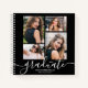 Graduation party spiral-bound SOFT or HARD cover guest book lets party guests, friends and family can sign their best wishes, even add instant photos. Your favourite photos on the front with your name, class year and school in chic lettering along with the word Graduate in an elegant script. Select your page style when ordering. MATCHING items and more designs in our collection.