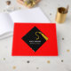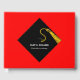 Creative graduation guest book to include words of advice and good luck wishes featuring black and gold cap pattern on red background. To personalise edit text to add graduate's name, school and senior class year.