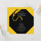 Unique graduation invite template featuring classic black and gold cap on yellow background.