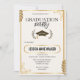 Elegant graduation party invitation with a clean white background, soft gold accents, and a classic graduation cap design. Fully editable template to personalize the name, date, time, location, class year, and RSVP details. Perfect for high school or college graduation celebrations.