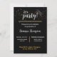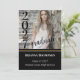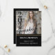 Graduation party invitations with photo of the graduate on front with their graduating year in bold on the left side of their photo. Party info on the back of the invitations with text in white on a black background. Edit this invitation with your own details and make your graduates celebration a night to remember.