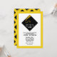 Creative yellow, black and gold graduation party invites featuring black and gold grad cap.
