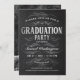 Graduation Party Invitations Scrollwork with faux silver foil. Minimalist, vintage, formal, fancy, elegant, old-fashioned calligraphy scrollwork on chalkboard background