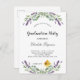 A white background decorated with lavender flowers and eucalyptus greenery. Personalize and a name and details.
