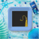 Creative modern graduation party plates featuring classic black graduation cap with a gold tassel on a light blue background.
