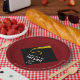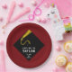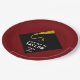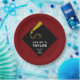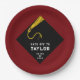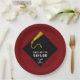 Creative graduation party plates featuring black cap and gold tassel design on a maroon background. Edit text to add your favourite grad's name and the year.